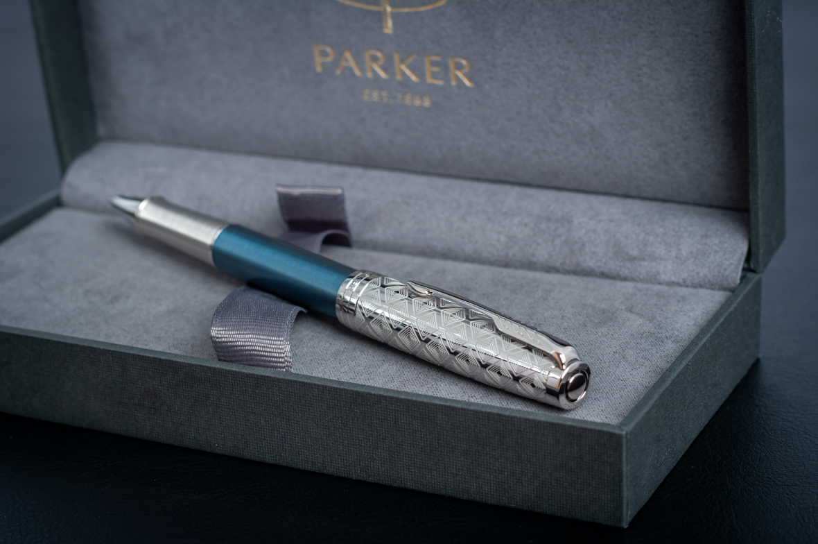 Ручка роллер Parker Sonnet Premium Metal Blue CT от официального дилера Parker в Тюмени. Вы можете дополнительно заказать гравировку, которая подчеркнет Вашу оригинальность и придаст памятность статусному подарку. Все ручки Паркер поставляются в фирменном футляре.